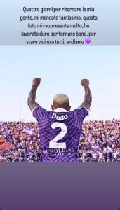 In questa prima parte di stagione viola è purtroppo mancato Dodô. Il terzino brasiliano si è infatti infortunato al sesto minuto di Udinese-Fiorentina dello scorso 24 settembre, quando in seguito ad un contrasto ha riportato un grave problema al legamento crociato del ginocchio. Da quel momento il brasiliano non è più sceso in campo e la sua assenza ha pesato molto sulla fascia destra, ma Dodô ha voglia di tornare. Pochi minuti fa il terzino carioca ha postato una storia in cui annuncia di tornare tra la sua gente tra appena 4 giorni. Non sappiamo se parli di campo – domenica si gioca proprio contro l’Udinese – o tribuna, ma è indubbio che Dodô abbia voglia di giocare e che la Fiorentina abbia bisogno del suo terzino.