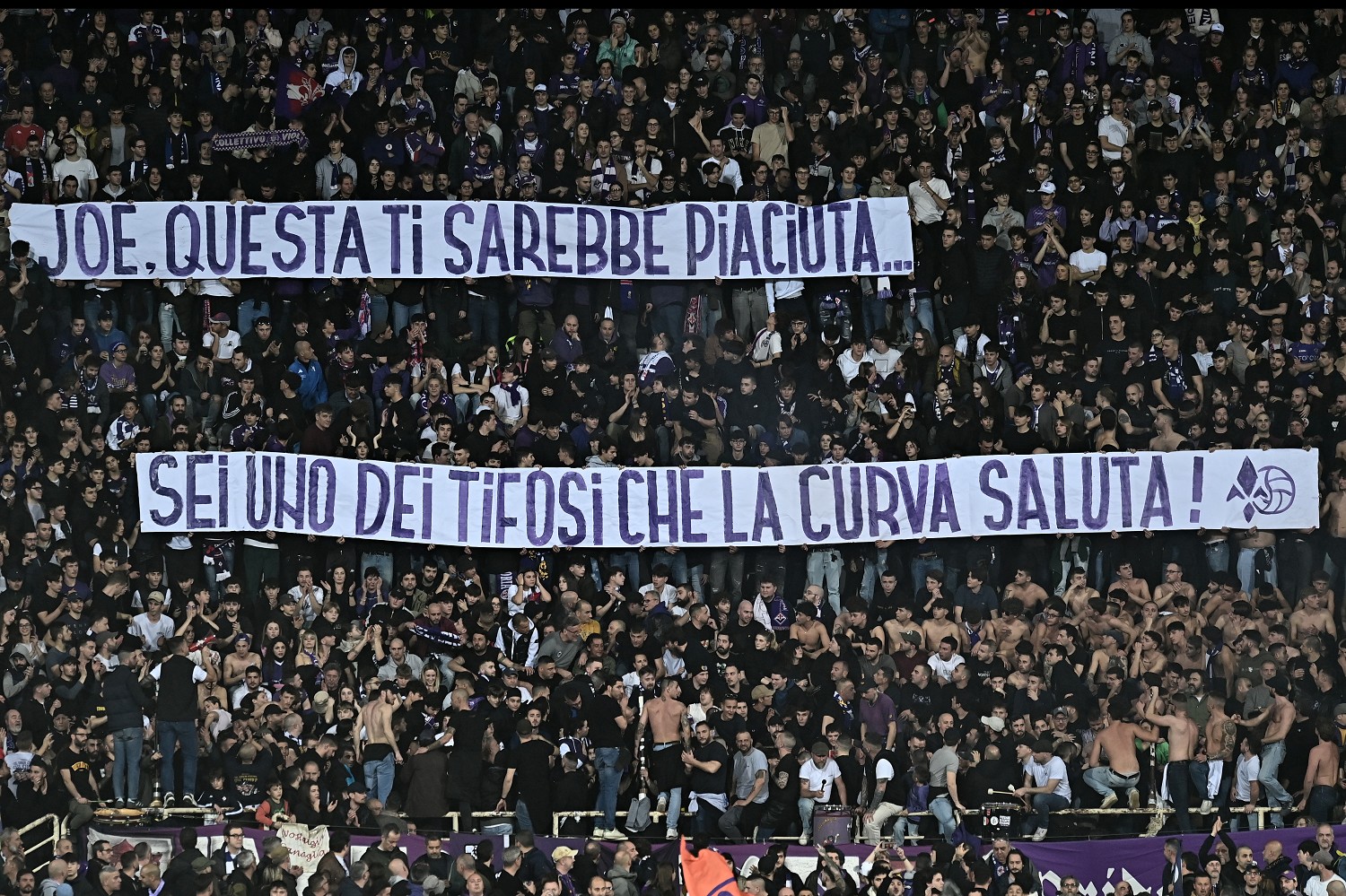 “Per abbracciare chi questo giglio ha amato, come una rondine vola alto il nostro pensiero, mai dimenticheremo chi troppo presto ci ha lasciato” e “Joe, questa ti sarebbe piaciuta… sei uno dei tifosi che la curva saluta” .