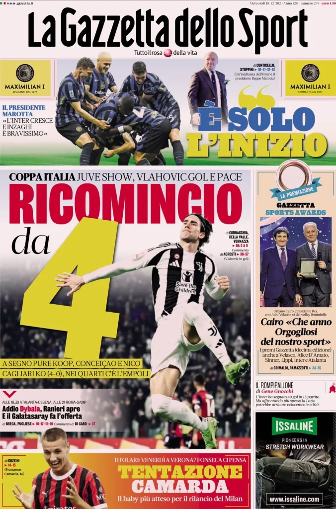 Queste le prime pagine dei quotidiani sportivi in edicola oggi...