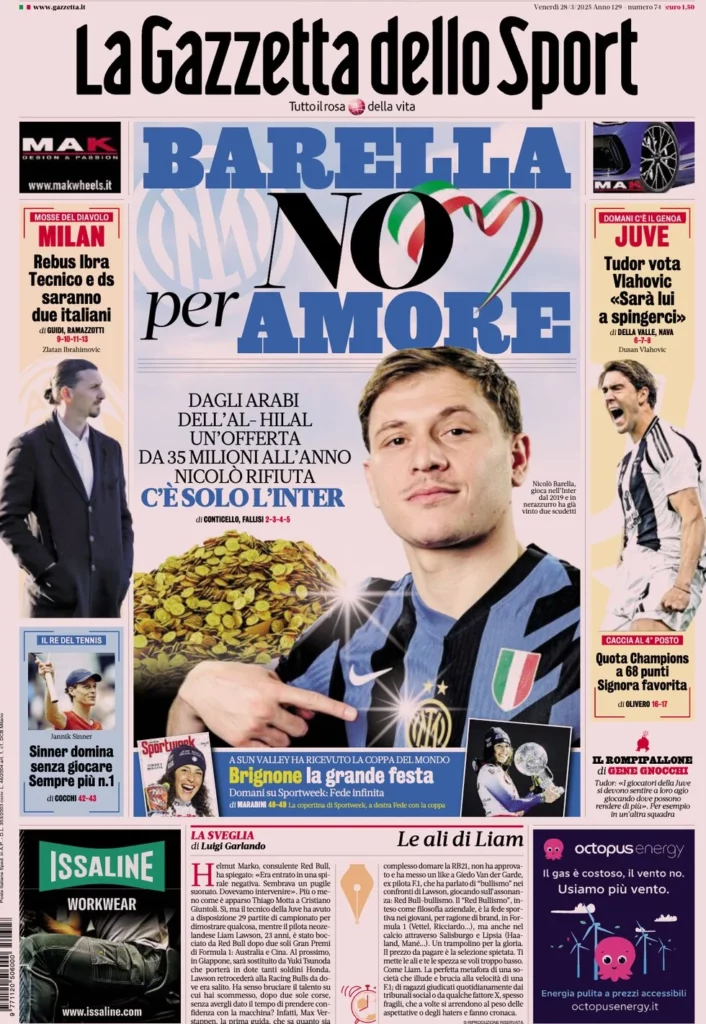 Queste le prime pagine dei principali quotidiani sportivi in edicola oggi...