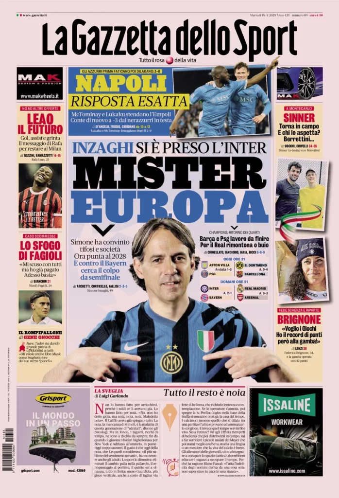 Queste le prime pagine dei maggiori quotidiani sportivi in edicola oggi...