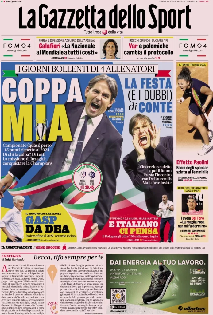 Queste le prime pagine dei maggiori quotidiani sportivi in edicola oggi...