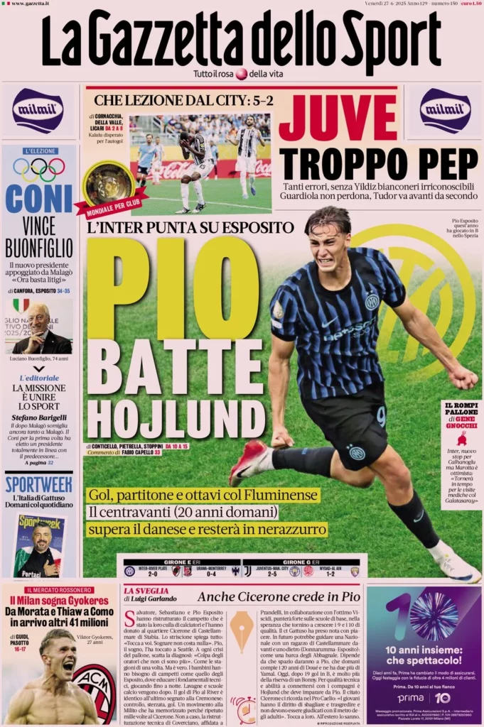 Queste le prime pagine dei maggiori quotidiani sportivi in edicola oggi...