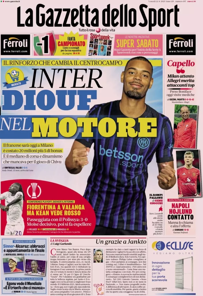 Queste le prime pagine dei maggiori quotidiani sportivi in edicola oggi...